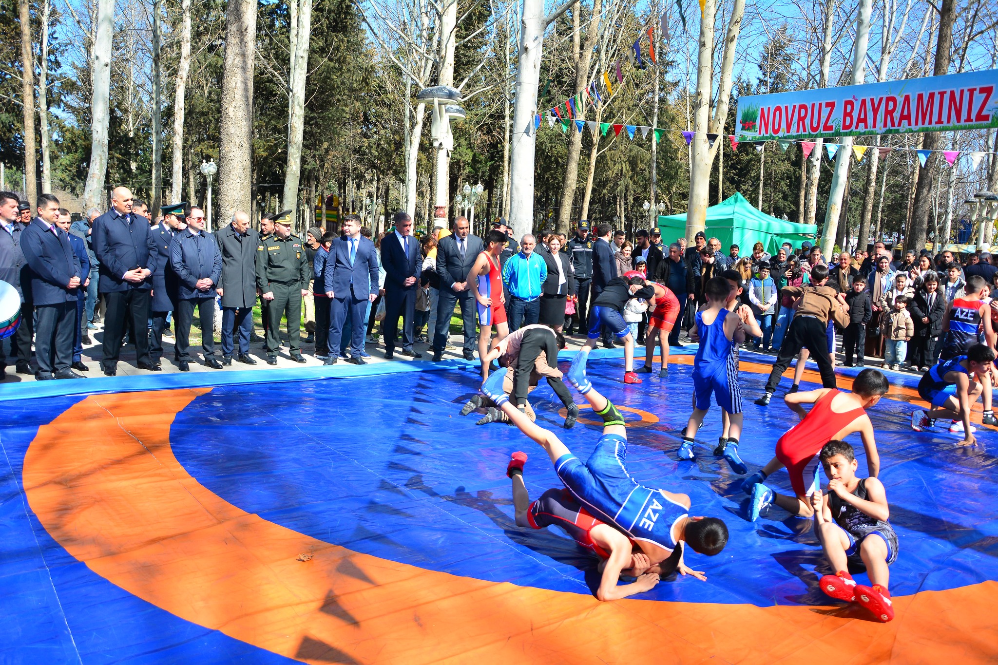 Əvvəlcə parkın ərazisində qədim maddi-mədəni irsimizi ifadə edən eksponatlara, yerli özfəaliyyət dərnəklərinin üzvlərinin dövlətçiliyə, milli dəyərlərə həsr etdikləri rəsm və əl işlərindən ibarət sərgilərə, uşaqların, məktəblilərin və incəsənət nümayəndələrinin təqdimatında çoxəsrlik Novruz adət ənənələrimizi ehtiva edən bahar qız, keçəl, kosa personajlarının iştirakı ilə milli rəqs, aşıq sənəti və digər folklor nümunələrindən ibarət ədəbi-bədii kompozisiyalara, dama, güləş, qol güləşi, əlbəyaxa döyüş üzrə idman klublarının nümunəvi çıxışlarına tamaşa olunub.